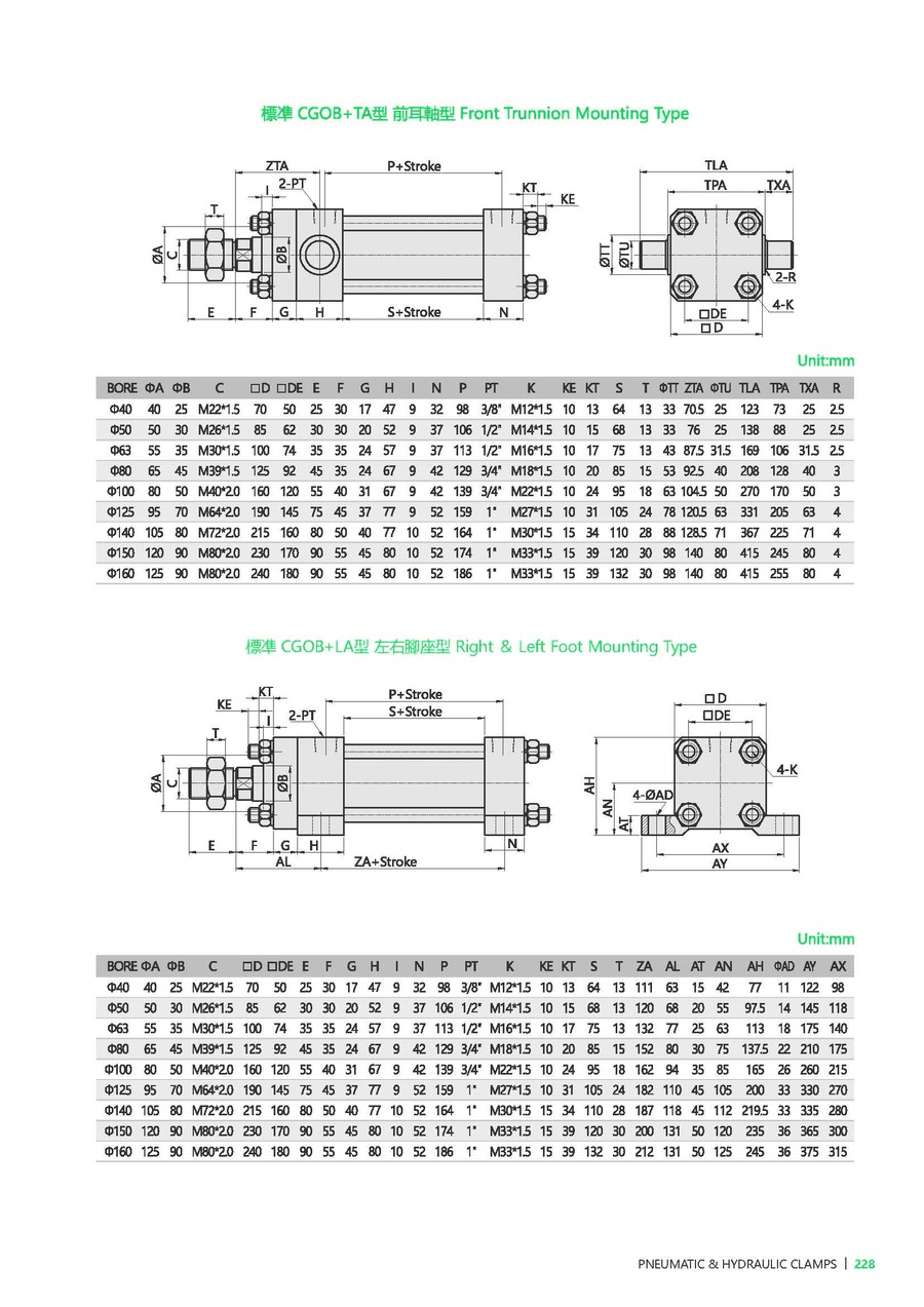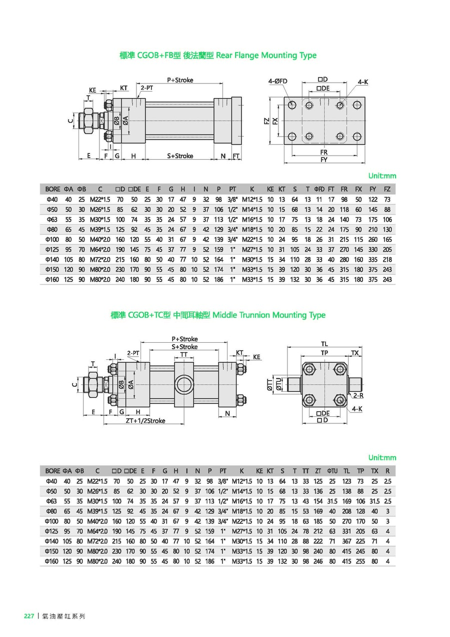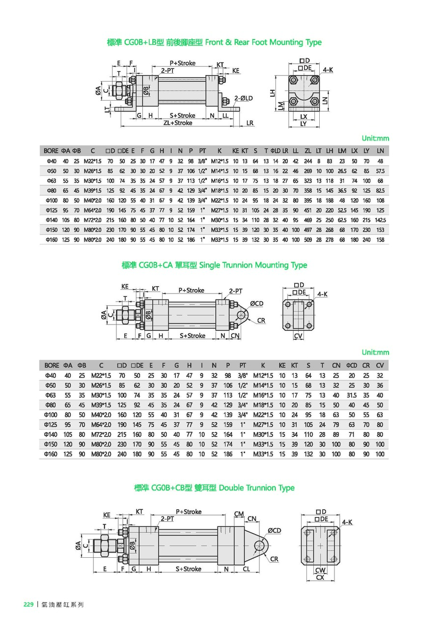 FA: Front Flange, FB: Rear Flange, LB: Foot Mount, TC: Trunnion Type, CA: Single Trunnion Type, CB: Double Trunnion Type, CBP: CB with Pin, CAB: CA+P+CB