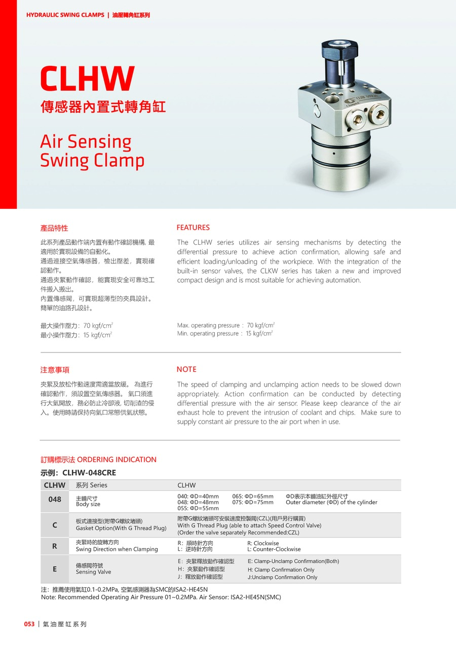 The CLHW series utilizes air sensing mechanisms by detecting the differential pressure to achieve action confirmation, allowing safe and efficient loading/unloading of the workpiece. With the integration of the built-in sensor valves, the CLKW series has taken a new and improved compact design and is most suitable for achieving automation.