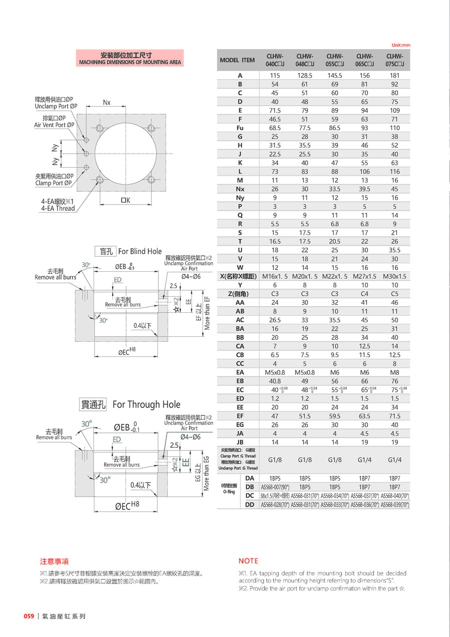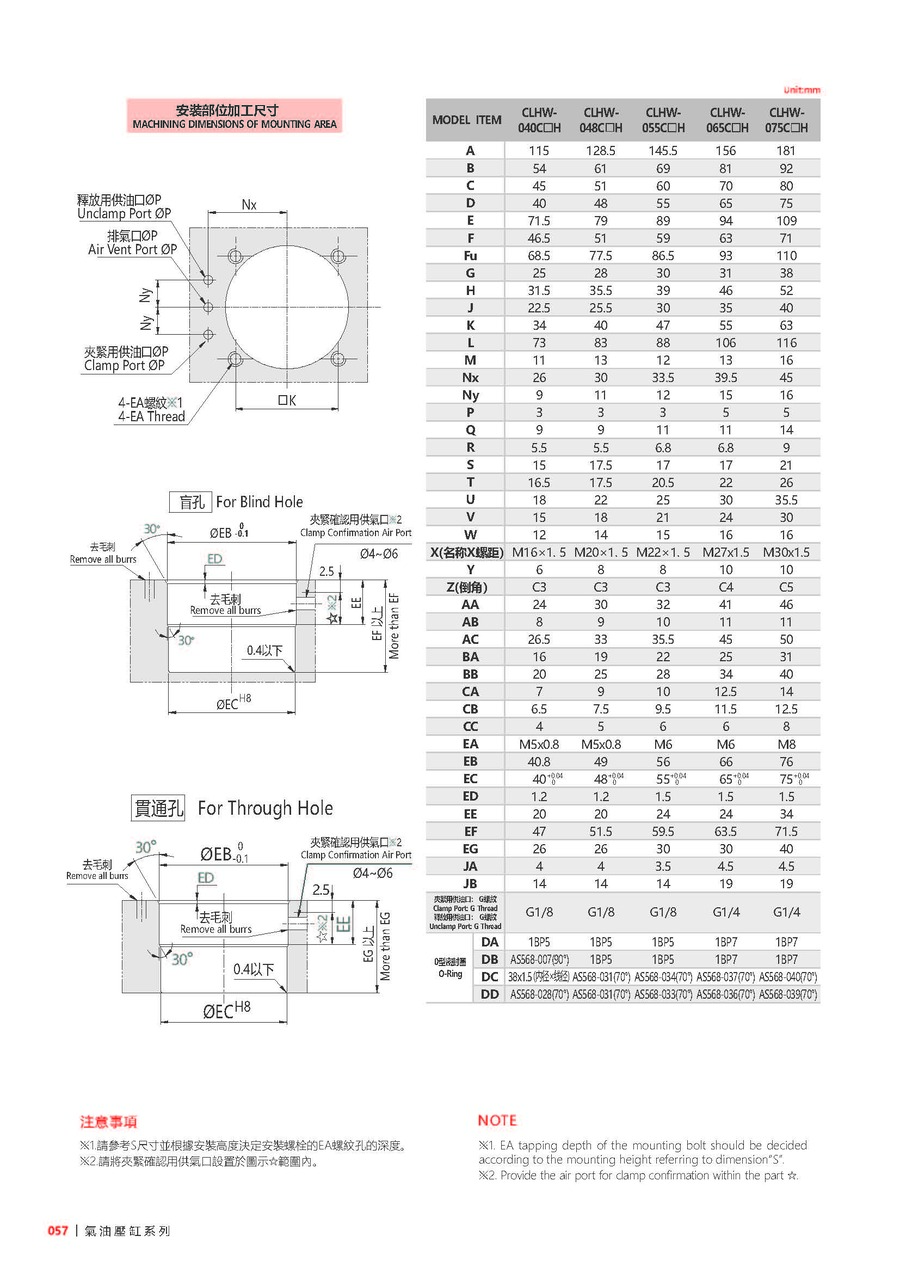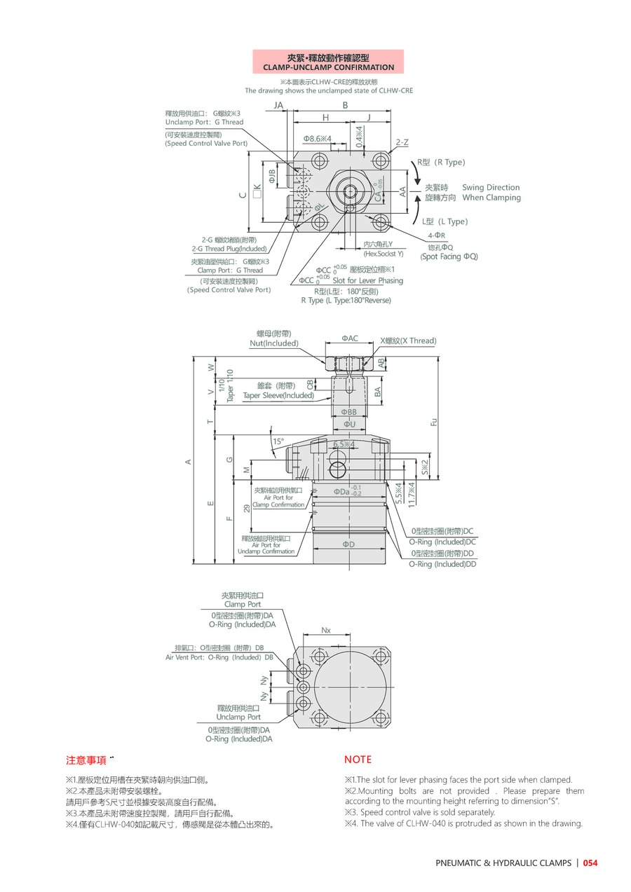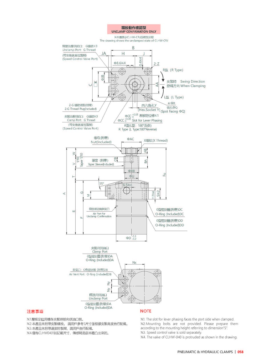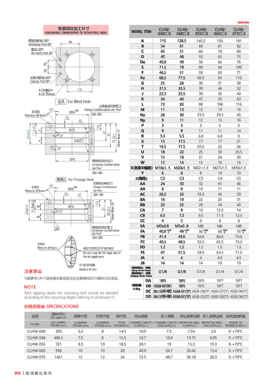 EFF. Piston Area Unclamp(cm²) 5 6.95 10.3 13.4 20.3