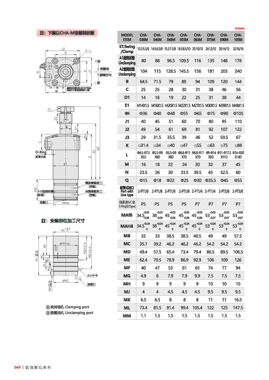 | Cylinder Capacity Unclamp(cm³) | 6.63 | 9.57 | 15.76 | 28.12 | 38.6 | 72.46 | 114.82 | 203.5 |