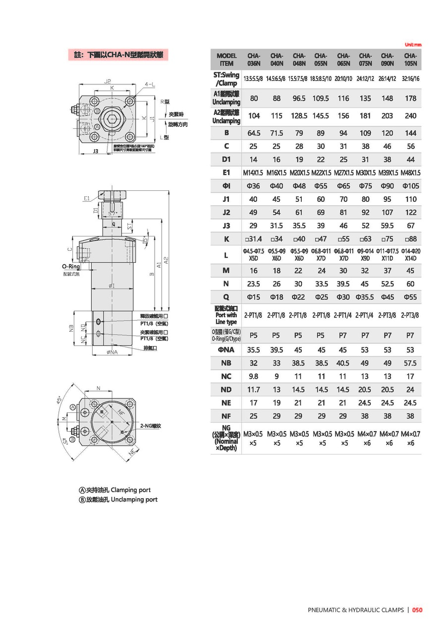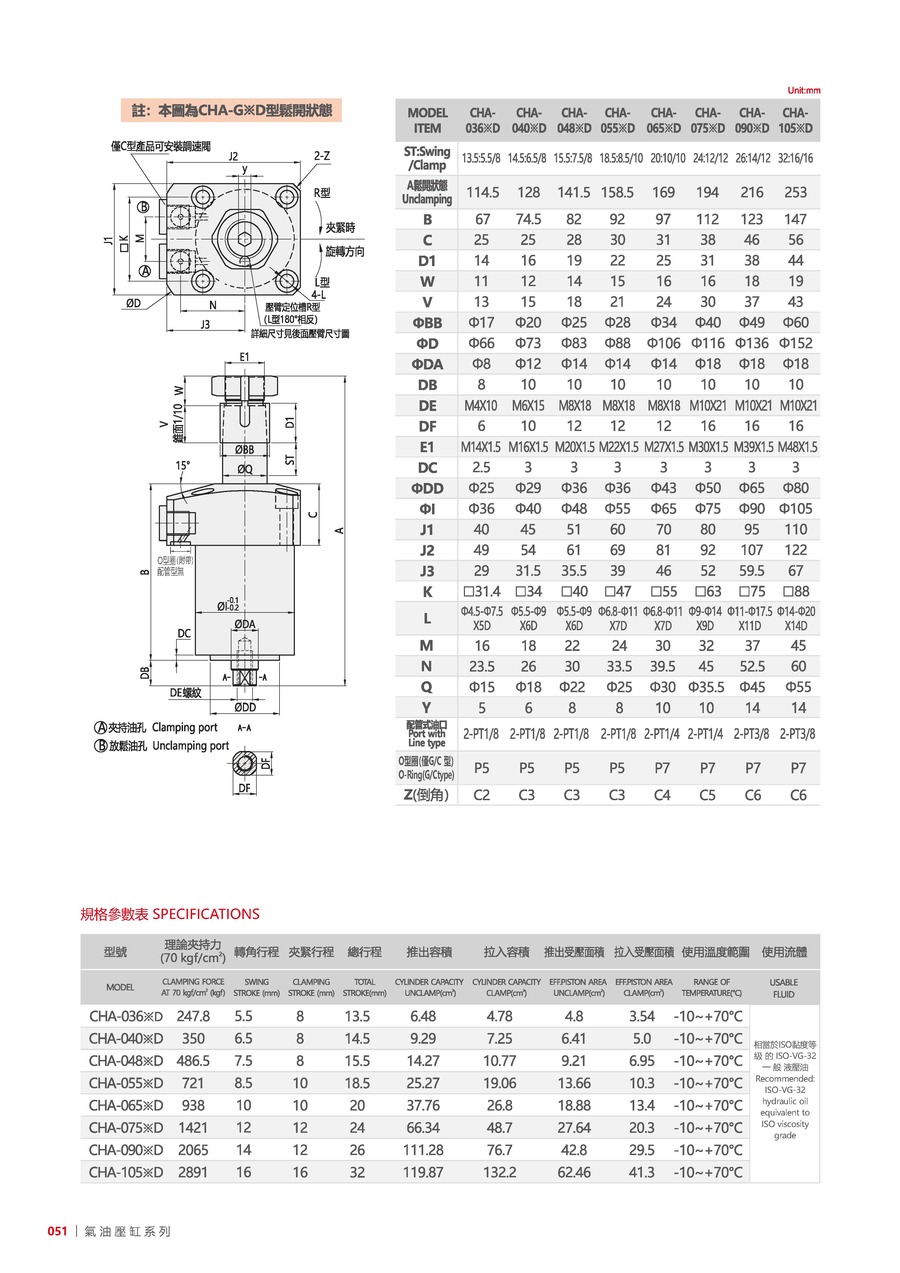 | Eff. Piston Area Unclamp(cm²) | 4.91 | 6.6 | 10.17 | 15.2 | 19.63 | 30.19 | 44.16 | 63.59 |
