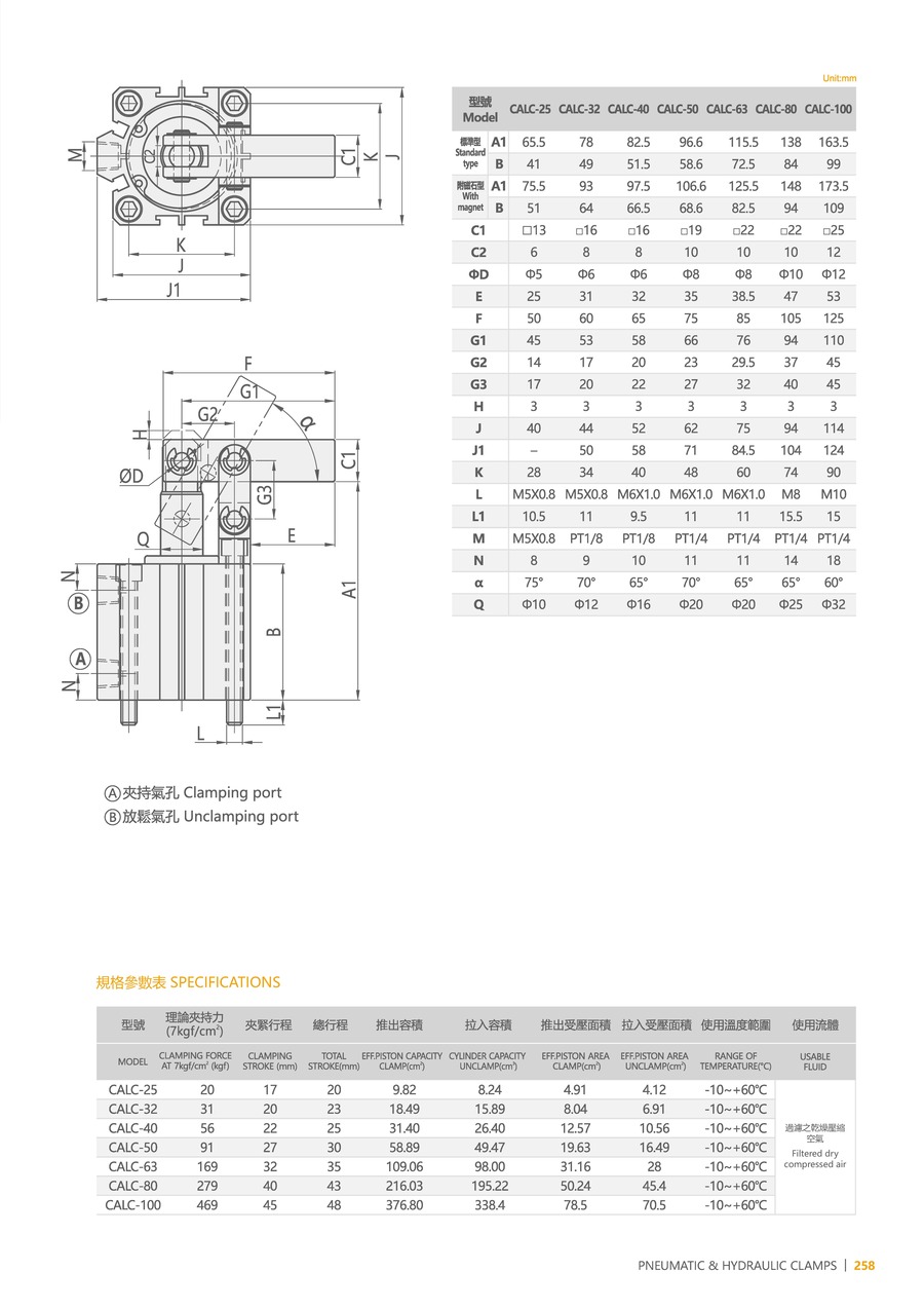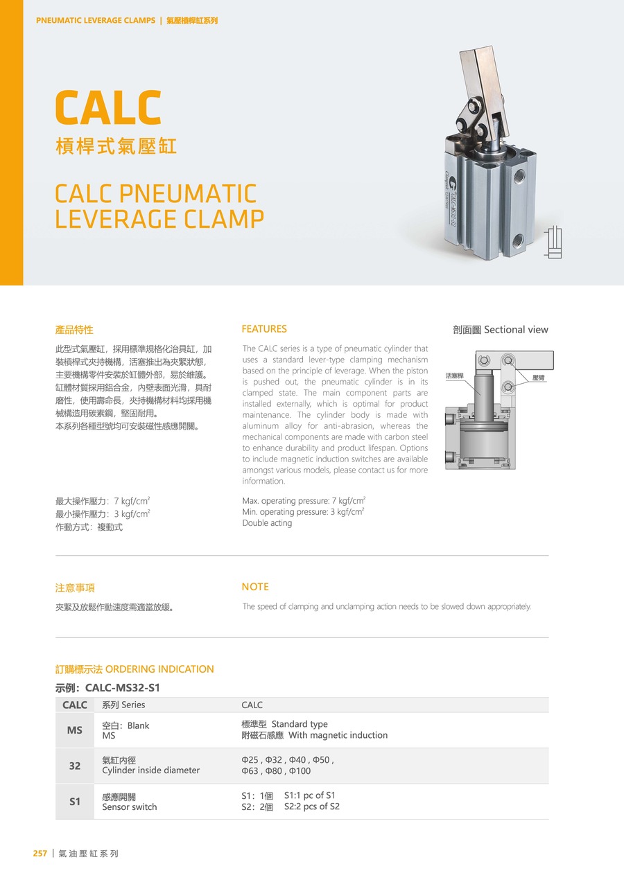 The CALC series is a type of pneumatic cylinder that uses a